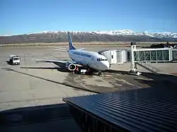San Carlos de Bariloche possède un aéroport fort fréquenté par les touristes désireux d'accéder au parc national Nahuel Huapi et à la région andine proche. La ville est située à 1 650 km de Buenos Aires. Plusieurs compagnies aériennes assurent une liaison régulière entre les deux villes grâce à l'aéroport de la ville. Des vols internationaux desservent également la ville. Le trafic passagers se montait à 1 308 001 personnes en 2017, soit un doublement en 10 ans. La longueur de piste est de 2 200 mètres, ce qui lui permet de recevoir des Airbus 320.