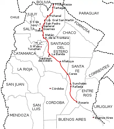 De plus, la route nationale 34, partie de Rosario, remonte vers le nord, assez parallèlement à la RN 11, mais plus à l'ouest, en direction de Santiago del Estero et du grand nord-ouest argentin.