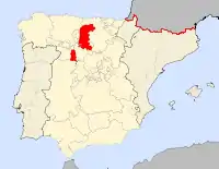 Localisation de la province de Toro dans le contexte des provinces et couronnes d'Espagne en 1590.