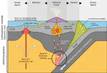 - Arc volcanique cadrant à l'ouest[31],[32],[33] - Marge continentale cadrant dans l'est |