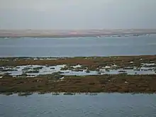 Le désert avec la ville de Tarfaya, chef-lieu d'une des provinces du Sud (province de Tarfaya), dans la région Laâyoune-Sakia El Hamra.