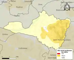 Le retrait-gonflement des sols argileux est susceptible d'engendrer des dommages importants aux bâtiments en cas d’alternance de périodes de sécheresse et de pluie. 38 % de la superficie communale est en aléa moyen ou fort (67,7 % au niveau départemental et 48,5 % au niveau national). Sur les 447 bâtiments dénombrés sur la commune en 2019, 162 sont en aléa moyen ou fort, soit 36 %, à comparer aux 72 % au niveau départemental et 54 % au niveau national. Une cartographie de l'exposition du territoire national au retrait gonflement des sols argileux est disponible sur le site du BRGM[34],[Carte 2].