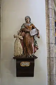 Statues de Sainte Anne, tenant un livre sur lequel le verset 6 du psaume 142 est inscrit, et de Marie sa fille, dans l'église paroissiale de Molln.