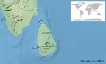 Cette espèce est endémique des plaines du Sud-Ouest du Sri Lanka[1],[2]. Elle se rencontre à une altitude comprise entre 78 et 150 m.
