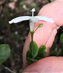 Les fleurs ont une corolle blanche et se trouvent sur des inflorescences pédonculées, uniflores à triflores[1].