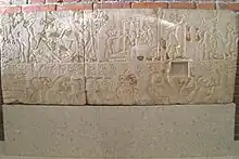 Un autre relief également conservé à Berlin, présente une scène similaire dans une grande cour dotée de colonnades. On y voit un groupe de dignitaires parmi lesquels figurent une nouvelle fois les deux vizirs. Elle représente une autre étape des cérémonies pratiquées à cette époque soit dans un temple de la cité[9] avant la procession vers la nécropole soit encore dans la cour du propre monument funéraire du dignitaire défunt.
