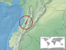 Cette espèce est endémique de Colombie[1]. Elle se rencontre entre 1 750 et 1 900 m d'altitude dans le centre de la cordillère Occidentale.