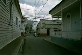 ![]() Rue de Puerto Plata | ![]() Vue de Puerto Plata à partir de la plateforme d'arrivée du téléphérique menant au sommet du Pico Isabel de Torres (793 m) |