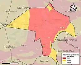 Le retrait-gonflement des sols argileux est susceptible d'engendrer des dommages importants aux bâtiments en cas d’alternance de périodes de sécheresse et de pluie. La totalité de la commune est en aléa moyen ou fort (75,2 % au niveau départemental et 48,5 % au niveau national). Sur les 698 bâtiments dénombrés sur la commune en 2019, 698 sont en aléa moyen ou fort, soit 100 %, à comparer aux 94 % au niveau départemental et 54 % au niveau national. Une cartographie de l'exposition du territoire national au retrait gonflement des sols argileux est disponible sur le site du BRGM[24],[Carte 3].