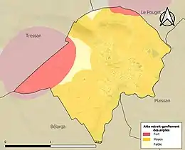 Le retrait-gonflement des sols argileux est susceptible d'engendrer des dommages importants aux bâtiments en cas d’alternance de périodes de sécheresse et de pluie. 93,7 % de la superficie communale est en aléa moyen ou fort (59,3 % au niveau départemental et 48,5 % au niveau national). Sur les 221 bâtiments dénombrés sur la commune en 2019, 221 sont en aléa moyen ou fort, soit 100 %, à comparer aux 85 % au niveau départemental et 54 % au niveau national. Une cartographie de l'exposition du territoire national au retrait gonflement des sols argileux est disponible sur le site du BRGM[17],[Carte 2].