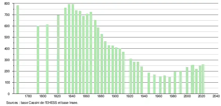 - Christiane Vidal, « Chronologie et rythmes du dépeuplement dans le département des Alpes-de-Haute-Provence depuis le début du XIXe siècle. », Provence historique, tome 21, no 85, 1971, p. 288.