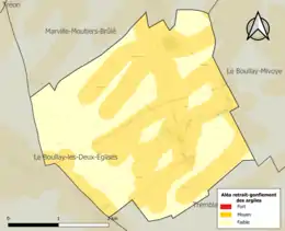 Le retrait-gonflement des sols argileux est susceptible d'engendrer des dommages importants aux bâtiments en cas d’alternance de périodes de sécheresse et de pluie. 58,3 % de la superficie communale est en aléa moyen ou fort (52,8 % au niveau départemental et 48,5 % au niveau national). Sur les 67 bâtiments dénombrés sur la commune en 2019, 65 sont en aléa moyen ou fort, soit 97 %, à comparer aux 70 % au niveau départemental et 54 % au niveau national. Une cartographie de l'exposition du territoire national au retrait gonflement des sols argileux est disponible sur le site du BRGM[16],[Carte 2].