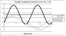 où Ueff et Ieff sont les valeurs efficaces de la tension et du courant, et φ est le déphasage de la tension par rapport au courant.