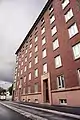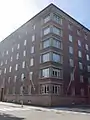 Contrairement aux idéaux de l'époque, et comme le note l'architecte, «à cause de la demande sans compromis du constructeur», la façade est maçonnée en brique brûlée foncée et scellée avec du mortier coloré. L'immeuble a six étages et il compte 79 appartements et 225 chambres au total[1].