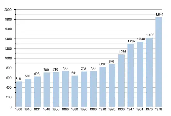 - Sources : INS, Rem. : 1831 jusqu'en 1970 = recensements, 1976 = nombre d'habitants au 31 décembre[2].