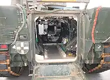 | Blindage | Équivalent à la norme STANAG 4569 de niveau 4, protection intégrale jusqu'au calibre 14,5 mm et aux mines de 10 kg. protection contre les obus de 30 mm et les RPG sur la partie frontale |