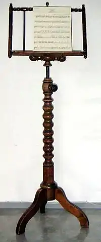 Au milieu du Moyen Âge, dès que la musique occidentale savante a systématisé l'usage de la notation, le pupitre a désigné un meuble servant à soutenir une partition, afin d'en permettre la lecture.