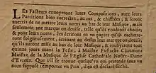 - un motet à cinq voix en deux parties (les deux premiers nommés recevaient l’orgue et ou la harpe d’argent) ;