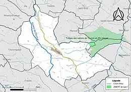 L’inventaire des zones naturelles d'intérêt écologique, faunistique et floristique (ZNIEFF) a pour objectif de réaliser une couverture des zones les plus intéressantes sur le plan écologique, essentiellement dans la perspective d’améliorer la connaissance du patrimoine naturel national et de fournir aux différents décideurs un outil d’aide à la prise en compte de l’environnement dans l’aménagement du territoire. Une ZNIEFF de type 1[Note 2] est recensée sur la commune[11] : les « tulipes des vallons de Touron et d'En Caulet » (345 ha), couvrant 5 communes du département[12].