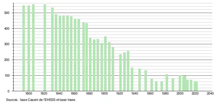 - Population municipale légale en vigueur au 1er janvier 2024, millésimée 2021, définie dans les limites territoriales en vigueur au 1er janvier 2023, date de référence statistique : 1er janvier 2021.