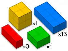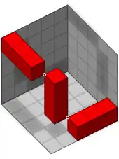 Un empilement possible pour les trois bloc 1 × 1 × 3.
