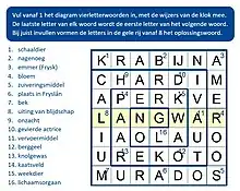Il existe également des énigmes en spirale dans lesquelles les mots ne doivent être entrés, et lus, que dans une seule direction[5]. La dernière lettre d'un mot devient la première lettre du mot suivant[6]. Sans ce partage des dernières-premières, ce casse-tête n'est plus qu'un quiz avec l'apparence d'un casse-tête. Pour obtenir des puzzles en spirale plus difficiles, la numérotation dans la spirale est manquante leur auteur peut supprimer la numérotation dans la spirale.