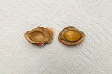 Un pyrène est le « noyau » du fruit à l'intérieur d'une drupe produit par la lignification de l'endocarpe ou de la muqueuse du fruit.[1] Il se compose d'un tissu dur endocarpe entourant une ou plusieurs graines (également appelées « noyau » ).[2][3] L'endocarpe durci qui constitue le pyrène fournit une barrière physique protectrice autour de la graine, la protégeant des pathogènes et des herbivores.[4]