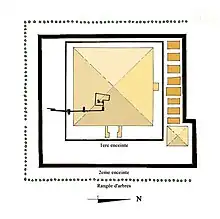 - pour la première fois, les Égyptiens placèrent l'entrée au sud et non pas au nord, au niveau du sol et non pas sur la face du monument