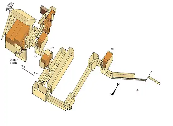 - Les autres pyramides à avoir cette particularité sont la pyramide d'Amenemhat III et le complexe de Djéser
