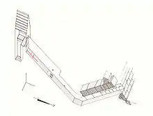 Le plan des infrastructures rappelle tout à fait le plan de la pyramide de Khéops, le couloir ascendant représentant la grande galerie. Au bout de celle-ci se trouve la chambre funéraire (nommée ainsi bien qu'il soit fort probable qu'elle n'ait jamais contenu de sarcophage)[20], située sous l'apex de la pyramide et couverte d'une voûte en encorbellement. Un puits fut creusé, sans doute par des chercheurs de trésor, dans le quart-sud-est du sol de la chambre et sur une profondeur de quatre mètres[20].