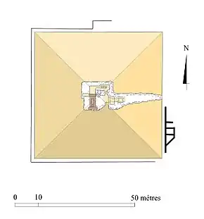 | Pyramide du culte | 5,2 m | ~4,5 m | 60° | ||||||||||||||||