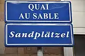 Des plaques de rues bilingues, à la fois en français et en alsacien, ont été mises en place par la municipalité à partir de 1995[2]. C'est le cas du Sandplätzel, littéralement « petite place au Sable ».