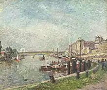 Des bateaux amarrés quai de Paris, à Rouen. | |