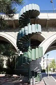 - Pont de Levallois, qu'on peut atteindre depuis le quai par un escalier hélicoïdal.