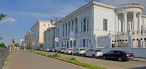 L'Institut Mariinsky des jeunes filles nobles a été projeté dès 1842, lorsque la noblesse de Nijni Novgorod a décidé de faire un don à l'institution nommée en l'honneur de la princesse Marie Alexandrovna pour l'enseignement des jeunes filles de la noblesse. Cependant, l'institut, formé en 1852, a été contraint de louer une maison aux héritiers du marchand Rytchine pendant six ans qui se trouvait rue Ilinskaïa (Saint-Élie), jusqu'à ce qu'en octobre 1858 un bâtiment soit construit entre le quai et la rue Joukovski, dans le secteur de la place au Foin. C'est l'empereur Nicolas Ier lui-même qui choisit l'emplacement de l'institut construit par l'architecte P.S. Pavlov en style néoclassique[36].