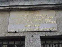 Plaque commémorative sur l'immeuble occupé par la Gestapo, au 58 bis boulevard Albert 1er