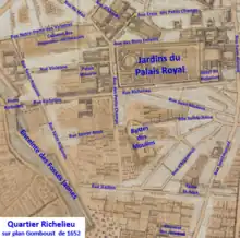 Le quartier correspond au territoire de l'ensemble des rues ouvertes à partir des années 1630 à l'initiative du cardinal de Richelieu autour du Palais cardinal étendu jusqu'au nouveau cours créé en 1670 soit un espace compris entre la rue Saint-Honoré au sud, les rues Croix-des-Petits-Champs, Notre-Dame-des-Victoires et Montmartre à l'est, les boulevards Montmartre et des Italiens au nord, l'avenue de l'Opéra à l'est. Ces limites ne peuvent cependant être fixées avec la même certitude que pour des quartiers administratifs.
