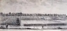 - La « forêt Maudam » offerte par Charles le Chauve à l’abbaye de Saint-Denis aurait donné son nom au hameau de Ménilmontant bâti auprès de ce bois, par déformation de « Maudam » en « Mautemps » d'où Mesnil Mautemps ou demeure du mauvais temps puis en Ménilmontant en raison de sa situation en hauteur. Le coteau était planté de vignes notamment celles du Val Panoyau (rue des Panoyaux), celles du domaine de l’Orillon. Les religieux de Sainte-Croix de la Bretonnerie y acquièrent en 1449 une demeure entourée de 2 hectares de terres en haut de la côte. Une statue de la Vierge était vénérée dans cette maison du Clos du Mesnil Mautemps, sous le nom de Notre Dame de la Croix. La statue transférée à l’église de Bagnolet sous la Révolution donne son nom à l’église du quartier. Le clos et le hameau dépendaient de la paroisse de Bahnolet et étaient sous la juridiction du seigneur de Maulny et des Bruyères. Après la guerre de Cent ans, une seigneurie vassale du fief de Maulny y est constituée. Son domaine était celui du parc de Saint-Fargeau d'une superficie d'environ 50 hectares où un manoir est construit au début du XVIe siècle à proximité du hameau, à l'angle des actuelles rue Pelleport et Saint-Fargeau[6]. Ce parc était séparé sur sa bordure est de celui du château des Bruyères par un mur d'enceinte situé à l'emplacement de la bordure extérieure de la future enceinte de Thiers construite en 1841-1844 démantelée en 1919, soit actuellement une ligne de la porte des Lilas à la porte de Ménilmontant entre le boulevard périphérique et la caserne Mortier se prolongeant par la rue des Fougères. Cette limite sera celle des communes de Belleville et de Bagnolet de 1792 à 1860 puis de la Ville de Paris avec cette commune lors de l'annexion de Belleville à Paris en 1860, enfin celle séparant Paris et Les Lilas à partir de la création de cette commune en 1867 qui détache de la commune de Bagnolet le territoire de l'ancien parc des Bruyères (aliéné en 1760).