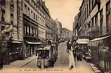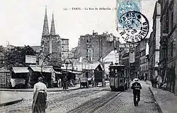 On voit au premier plan le tramway funiculaire de Belleville qui circula de 1891 à 1924.