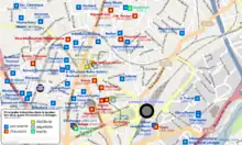 - le prolongement du centre-ville, à l'Ouest (dite partie « noble »), avec le Champ de Juillet, les immeubles chics du quartier Jourdan (rue d'Isly, cours Jourdan, les Feuillants) et plus loin le centre historique[1]. L'aménagement urbain est fait de telle sorte que du côté « noble », la gare et son campanile soient vus de loin, par de grandes artères et de grandes perspectives (depuis la place Denis Dussoubs, à 900 mètres en ligne droite au Sud-Ouest. D'ailleurs, l'axe qui relie cette place à la gare, et formé par l'avenue de la Libération et le Champ de Juillet, est parfois comparé à l'axe historique parisien.