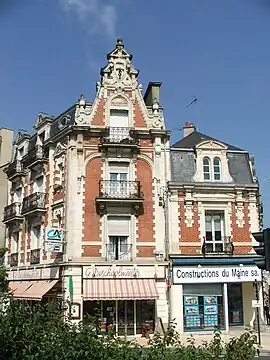 - L'immeuble Le Couteur est une HLM situé sur la rive gauche, en face du port du Mans. Son architecte est Jean Le Couteur, élève de Le Corbusier. Ce HLM date de 1954. La barre HLM est considérée comme avant-gardiste car illustrant une vision quasi uniquement fonctionnelle de l'architecture. À l'époque de la création de l'immeuble, le Vieux-Mans était entièrement insalubre, or la démographie de la ville était galopante. C'est également l'époque de la création de la ZUP d'Allonnes, et l'architecte a tenté d'allier fonctionnalité à plaisir. Ainsi les chambres et les salles de séjour sont toutes orientées vers la Sarthe pour offrir une vue agréable. L'architecte a également souhaité créer quelque chose de novateur et de résolument différent face au Vieux-Mans qui n'est situé qu'à quelques mètres plus à l'est[1]. Le Corbusier, lui, s'attellera à réfléchir au village coopératif, au nord de la Sarthe, à Piacé. Projet entamé en 1934, il ne verra jamais le jour[2]. L'opération des logements sociaux des Halles est quant à elle, entièrement revêtue de briques du côté de la rue Pasteur. En 1990, le développement du quartier est achevé avec la création d'un marché couvert doté de commerces, ainsi que des derniers logements.