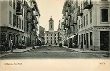 ![]() La rue Bavastro vers 1910. Au fond, l'arrière de l'église du port |
