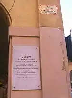 ![]() Plaque en mémoire de tous les membres de la famille Cassini qui ont contribué à la science. Elle se trouve à l'angle de la rue Cassini et de la place Garibaldi. |