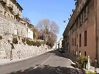 ![]() La rue Fodéré vue à l'opposé. Prise de vue sur l’escalier qui termine la rue sur les flancs du Mont-Boron. |