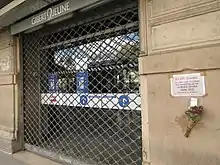 Affichette éphémère critique à l'égard de la fermeture de Gibert Jeune, célèbre librairie du quartier (2021).
