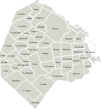 La ville de Buenos Aires est divisée en quartiers appelés barrios en espagnol, au nombre de 48 depuis le dernier remaniement datant du mois et dont voici la liste et un plan: