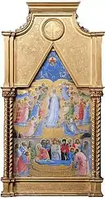 - Couronnement de la Vierge ; panneau de la prédelle : Adoration de Jésus enfant et anges