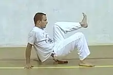 La queda de três (litt. chute de trois en portugais) est une position défensive de capoeira qui consiste à se tenir sur trois appuis, de dos au sol : les deux mains et une jambe (les fesses ne peuvent pas toucher le sol). C'est une position adoptée en cas de chute, mais aussi pour se protéger et/ou attaquer en levant l'une des jambes à partir de la queda de quatro.