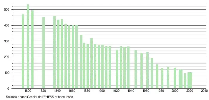 - Population municipale légale en vigueur au 1er janvier 2024, millésimée 2021, définie dans les limites territoriales en vigueur au 1er janvier 2023, date de référence statistique : 1er janvier 2021.