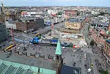 La Rådhuspladsen est une place située au cœur du centre-ville historique de Indre By à Copenhague. La principale rue piétonne commerçante de la capitale danoise, Strøget, relie la place de l'Hôtel-de-Ville à la place de Kongens Nytorv. À l'opposé de Strøget s'étend la grande artère de Vesterbrogade qui longe Frederiksberg. Sur un autre côté de la place passe le large et souvent embouteillé boulevard H.C. Andersens. Enfin, la Vester Voldgade (en) (rue des Remparts Ouest) conduit jusqu'au pont basculant de Langebro, qui permet de relier Seeland à l'île d'Amager, au niveau du port de Copenhague.